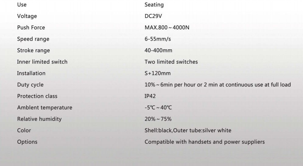 本產(chǎn)品已通過CE、UL、PSE、ISO9001認證,它有一個新穎的外觀和制作精良,噪音小,操作簡單,讓它成為暢銷國內(nèi)外,被廣泛用于電動沙發(fā)、醫(yī)療床、手術(shù)床,按摩椅等。