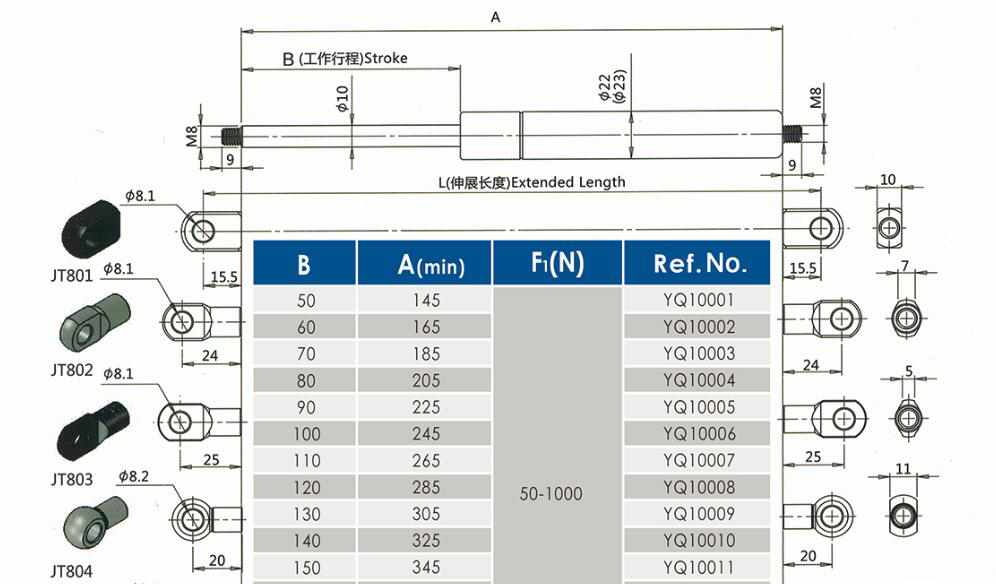 注:由于氣彈簧是非標準的,以上僅為型號的一部分。我們可以根據客戶的要求定制。