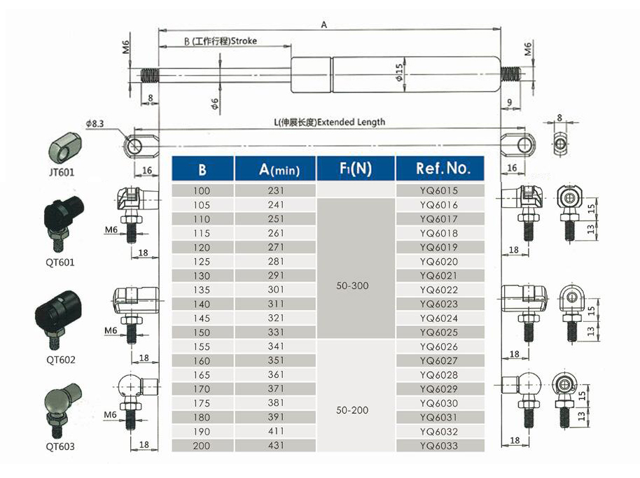 注:由于氣彈簧是非標(biāo)準(zhǔn)的,以上僅為型號(hào)的一部分。我們可以根據(jù)客戶的要求定制。