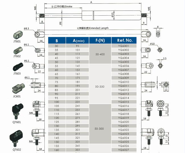 注:由于氣彈簧是非標(biāo)準(zhǔn)的,以上僅為型號的一部分。我們可以根據(jù)客戶的要求定制。