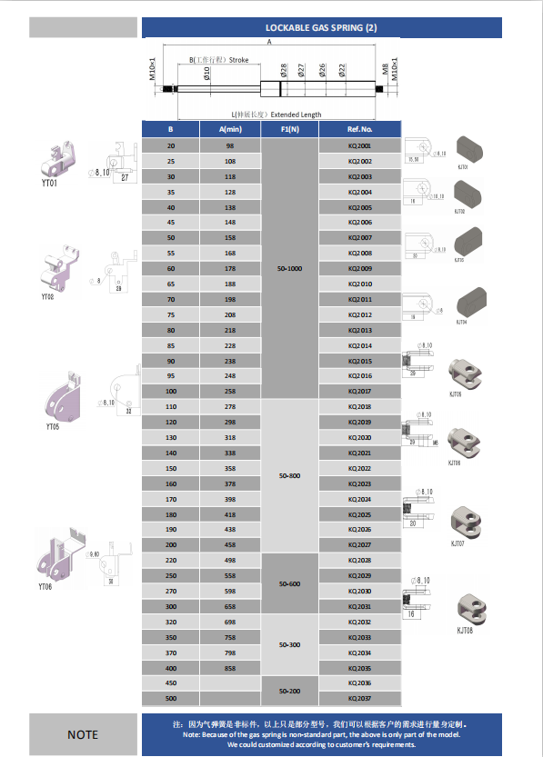 注:由于氣彈簧是非標(biāo)準(zhǔn)的,以上僅為型號(hào)的一部分。我們可以根據(jù)客戶的要求定制。