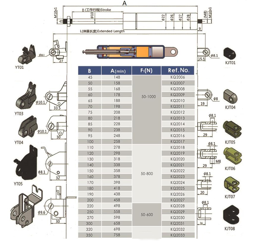 注:由于氣彈簧是非標準的,以上僅為型號的一部分。我們可以根據客戶的要求定制。