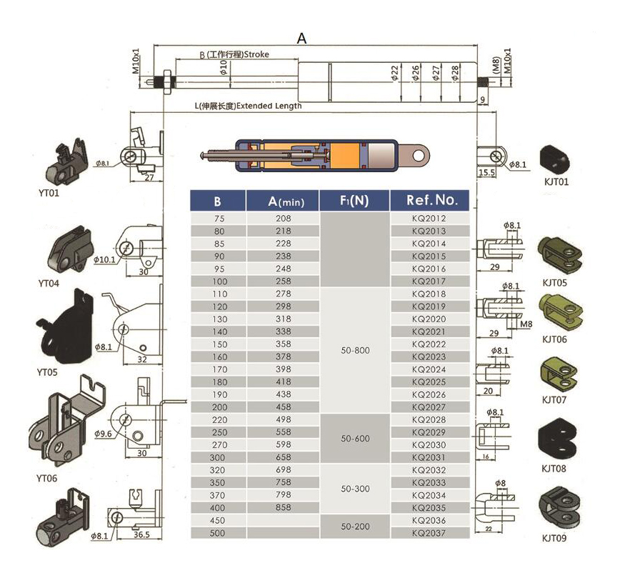 注:由于氣彈簧是非標(biāo)準(zhǔn)的,以上僅為型號的一部分。我們可以根據(jù)客戶的要求定制。