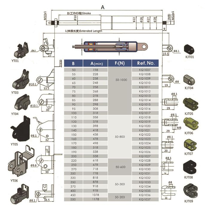 注:由于氣彈簧是非標準的,以上僅為型號的一部分。我們可以根據客戶的要求定制。